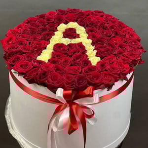Шляпная коробка с цветами «101 роза с любой буквой»